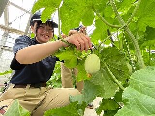 メロンを交配して8日目になりました。ハウスはメロンが少しずつ大きくなっています。
