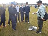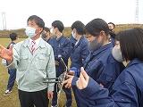 「立体視」や「写真測量」、「レーザーによる測量」などについて校内で講義を受けた後、沖水川の河川敷へ移動し、ドローンの操縦体験を行いました。ドローンを上昇、下降させたり、搭載されたカメラで記念写真を撮影したりしました。最後は本校OBの2名の先輩方からメッセージもいただきました。