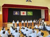 10月14日(水)1限目に、11月に行われる体育大会に向けて団長やリーダーを紹介する結団式が新型コロナウイルス感染症対策を行い、時間と場所を区切って行われました。短い時間での結団式となりましたが、各団とも団長やリーダーを中心に、団の結束を深めていました。