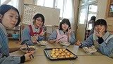 うどんは中力粉と塩・水のみで作ることができます。こねる作業が上手な生徒やなかなかまとまらずに悪戦苦闘する生徒がいました。生地を寝かせている間にチーズ饅頭を作りました。チーズ饅頭が完成すると、うどんを麺棒で伸ばして切りましたが、細い麺から極太の麺までありました。切り終わると早速茹でて試食を行いました。ひとり100gのうどんとチーズ饅頭2個は多いかと思いましたが、みんな完食していました。