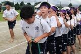 本日、体育大会でした。午前中は前日まで降った雨のため、体育館での実施となりましたが、午後からは、晴れたこともあり、3年生団技(むかで競争)、団対抗リレー、閉会式をグランドで実施しました。