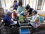 本日は2年ライフデザイン科の草花の総合実習は、特別養護老人ホーム「白寿園」で入居者や職員の方と、花壇やプランターに花植えを行いました。ビオラやハボタン、キンセンカの苗を一緒に植えました。初めての活動で緊張して中々会話が弾みながらとはいきませんでしたが、きれいに植え付けることができました。これからもこの活動を続けてもっともっと楽しくできればいいと思います。