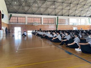 6月19日の全校生徒・教職員が参加した追悼集会では、北別府さんが活躍された当時の映像を視聴し、偉大な先輩の功績を再確認した後、1分間の黙とうを捧げました。