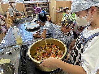 【L】児童とのカレー作り交流 投稿日時 : 2024/09/26 web担当 9月26日(木) 昨日収穫した野菜を生徒と児童協力して、ハート型や星型にくり抜いたり、具材を包丁(プラスチック)を使い、食べやすい大きさに切りました。その後、型抜いた具材、切った具材を鍋に入れ、おいしいカレーができました。初めての包丁だった子もいましたが、楽しく料理することができました。 Tweet {{options.likeCount}} {{options.likeCount}} {{options.unlikeCount}} {{options.unlikeCount}} 0 コメント