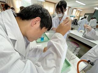 食品科学科では、3年生にもなると本格的な実験が行われます。