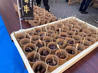また(株)内田畜産様の協力で、宮崎牛サイコロステーキのふるまいも行なわれました。