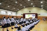 表彰式の後、始業式、生徒代表スピーチが行われました。