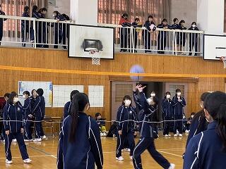体育館にて、全学年参加のクラスマッチが行われました。競技は男女ともにミニバレーボールでした。