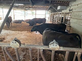 子牛は首にかけられたタグで管理され、自動給餌機をつかって哺乳される仕組みを使って、たくさんの牛が育てられています。