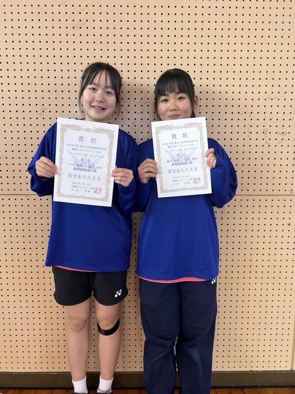 ダブルスは、1年農業科 中内さん 1年ライフデザイン科 橋谷さん のペアが3位に入賞しました!