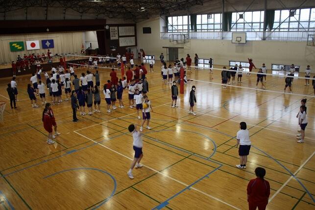 雨のため、サッカーがバレーボールになりましたが、大いに盛り上がりました!!