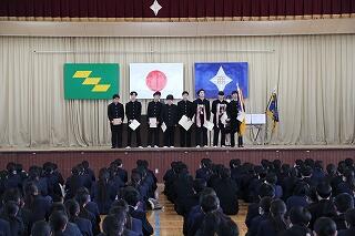 本日、三年生が無事に同窓会に入会しました。また、表彰式も実施されましたので、その様子をUPいたします。