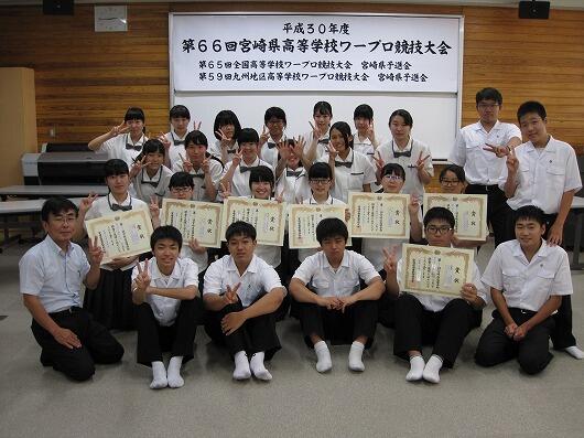 都城商業に入学し、何か部活動に入ろうと見学をしているとき、偶然ワープロ部に目が留まりました。静かな部活なのかと思っていたのですが、「よーい、始め。」の合図で一斉にキーボードを叩く音が響き渡った瞬間、その考えは違うと思いました。先輩方の顔はとても真剣で、緊張感が伝わってきました。そして十分が経ち、「止め。」の合図でキーボードの音が鳴り止みました。一切手元を見ないで打つ先輩方を見て、私もこんな風に打ちたいと思い、入部を決意しました。私が入部して初めて出場した新人大会。今までの、仲間内だけで競う部活ではなく、他の高校の部と競うのですから、緊張感は倍増しました。そして、結果は速度部門と技能部門のどちらも優勝でした。本当にすごい先輩方だと思います。私は貢献することはできなかったのですが、自分のことのように嬉しかったです。