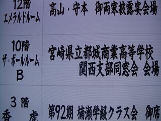 また、来賓に近畿宮崎県人会副会長の貫安利様、関西義友会会長の野崎正武様、近畿日向会副会長の伊賀絹代様、近畿高千穂会事務局長の鈴木政弘様、宮崎カーフェリー(株)関西支店長の岡田良敬様など多数の参加がありました。本部からは顧問橋詰雅次様(新商6回卒)、副会長隅貴巳子様(新商1回卒)、副会長中村太賀吉様(新商13回卒)が参加しました。