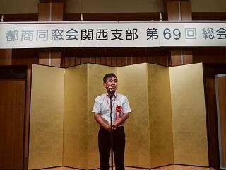 開会の挨拶をする関西支部長内村正行様(新商7回卒)