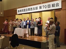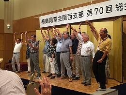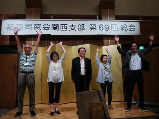9月1日(日)、12時から「ホテル阪神大阪」において『都商同窓会関西支部第70回記念総会・懇親会』が、多数のご来賓のご臨席の下、盛大に開催されました。今年度は、70回記念ということで、目標であった70名以上の参加者が集い、交流を深めるとともに、ひょっとこ踊りや歌、ハーモニカ伴奏、抽選会などの催しもあり、大いに盛り上がりました。素晴らしい同窓会を企画。運営していただいた内村支部長、竹間事務局長を始めとする幹事の皆様方、本当にありがとうございました。