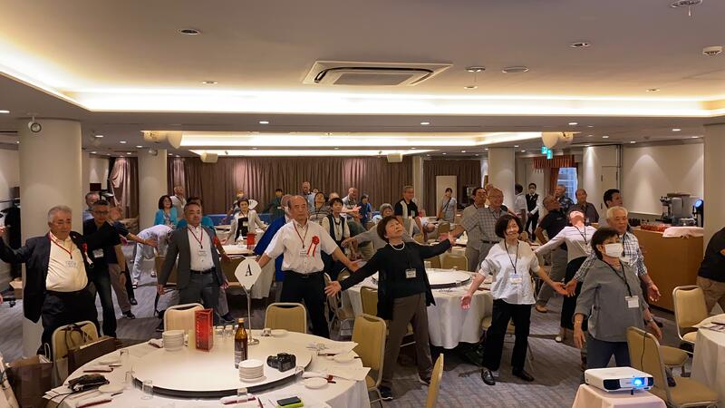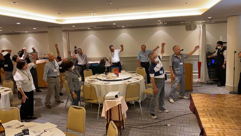 会の中では、都城を思いながら「ふるさと」の合唱や、都城版「ラジオ体操」、「安久節」の踊りなどが企画され、故郷、母校の都商を懐かしむように楽しい時間を過ごしました。