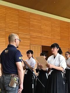 これまで、地域の方々や弓道関係者にお世話になり、大変感謝の気持ちでいっぱいです。県代表として、8月18日(土)に鹿児島県鹿屋市で行われる九州ブロックに出場いたします。これからの練習や国体強化合宿に向け部員一同頑張っていきたいと思います。