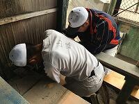 観覧席の座席は、保護者と選手が協力して木を切り、ねじで留める作業を行いました。