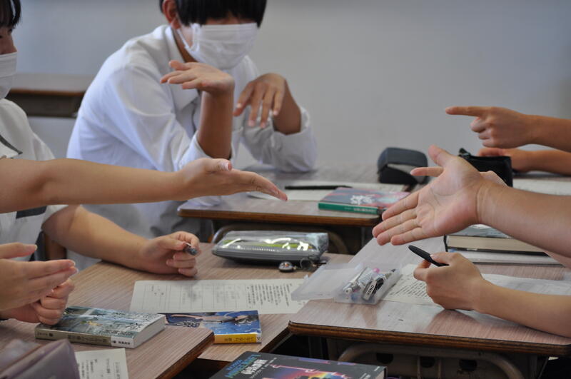生徒は前日までに紹介本の発表原稿を作成し、グループごとに発表し、質問や意見を出し合いました。