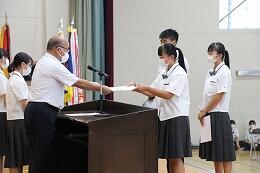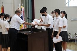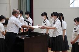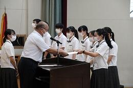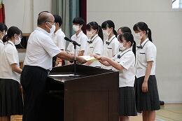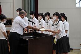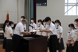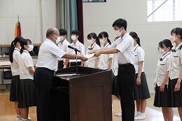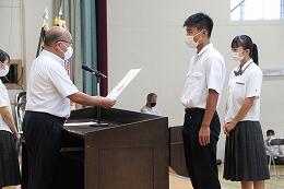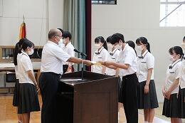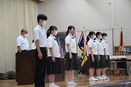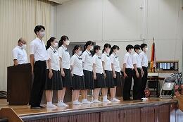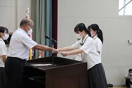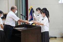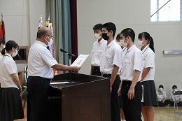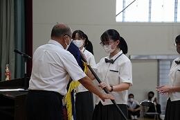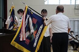 各部部長からの決意表明、校長から陸上競技部主将への団旗授与、生徒会長激励の言葉があり、