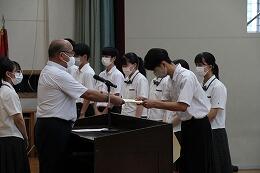 歓迎遠足は2年間延期しておりましたが、コロナウイルス感染症対応を徹底することで実現することができました。青島海水浴への遠足は5年ぶりということで、生徒は興奮する気持ちを抑えながら楽しむことが出来ました。1年生のクラス紹介、生徒会企画のクラス対抗レクレーションをした後、全員海を見ながらの黙食をし、最後にビーチクリーンして学校に帰ってきました。