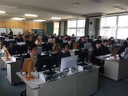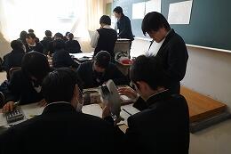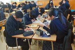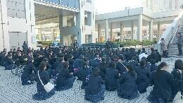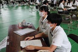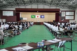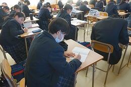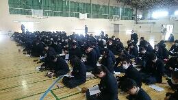 12月19日(金)1.2限において、「3年生の進路体験を聞く会」を本校、体育館にて実施しました。3年生の12名の進路決定者が、1.2年生に各自の進路体験を発表しました。1.2年生はしっかりとメモをして、熱心に聞いていました。感想文をみると、冬季休業を迎えるにあたって、また今後の学生生活において、進路意識の向上が見受けられて、とても有意義になったと感じました。発表してくれた3年生、そして司会進行をした進路情報専門委員長・副委員長さん、ありがとうございました。