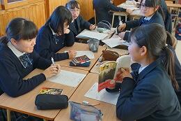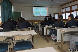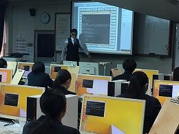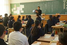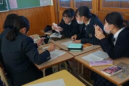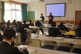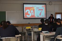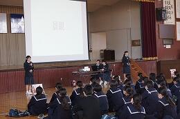 最後に、本校の課題研究「生徒商研班」に所属する池澤さんと元野さんに研究内容を発表してもらい中学生にアドバイスを行いました。とても充実した出前授業となりました。