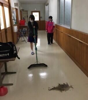 雨で滑りやすくなった廊下をマネージャーの、さくら、もえか、るなの3人がきれいに清掃作業をしてくれました。