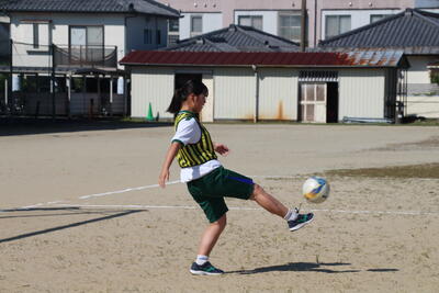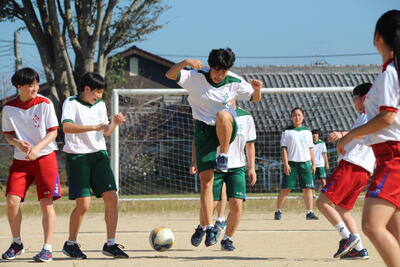 競技種目は、男子がバレー、女子がバレーとサッカーで戦いました。
