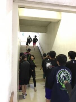 バスケットボール部と階段ダッシュを一緒にやりました。