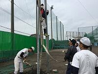 また、打撃用のネットを保護者に溶接していただき、ネットのほつれているところの修復作業等、選手達だけでは出来ない事を保護者協力の下ですることで、非常に充実したグラウンド整備だと思います。自分たちの手で球場を作ることが愛着がわき、道具等を大切にし環境に感謝する心の育成を今後も図っていきたいと思います。