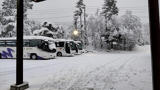 昨日到着した時には全く雪のなかったホテルでしたが、 2日目の朝、新雪で真っ白な雪景色に変わりました。 今日のスキー研修が楽しみです