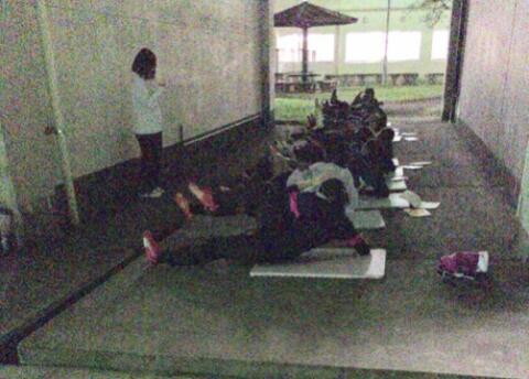 練習の最後は、必ず体幹運動をします。計測と声出しはマネージャーの仕事。今日は、ルナ(1年生)がやってくれました。