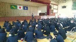 12月19日金曜日、本日、授業終了日でした。1.2限は3年生の進路体験を聞く会の後、大清掃、表彰伝達式、全校集会、LHRにて終了しました。