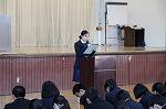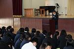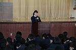 12月19日(金)1.2限において、「3年生の進路体験を聞く会」を本校、体育館にて実施しました。3年生の12名の進路決定者が、1.2年生に各自の進路体験を発表しました。1.2年生はしっかりとメモをして、熱心に聞いていました。感想文をみると、冬季休業を迎えるにあたって、また今後の学生生活において、進路意識の向上が見受けられて、とても有意義になったと感じました。発表してくれた3年生、そして司会進行をした進路情報専門委員長・副委員長さん、ありがとうございました。
