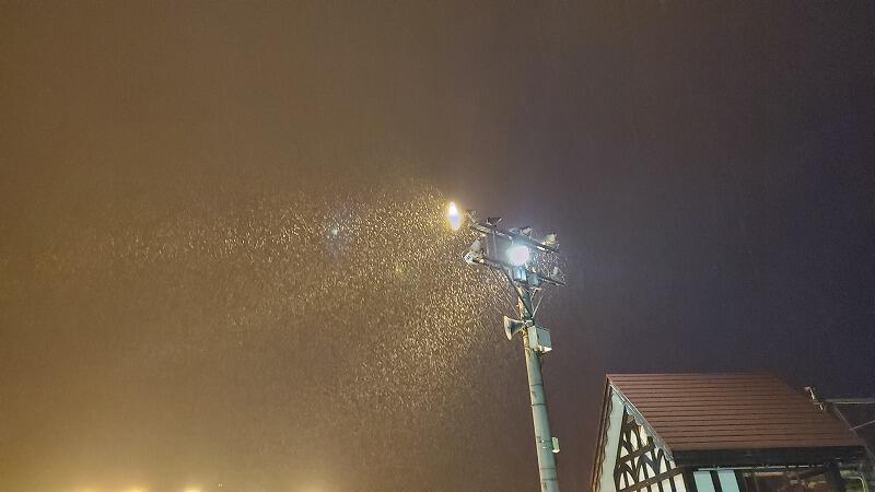 トンネルを抜けると雪が舞っていました。真っ白な山々を見て歓声が上がりました。