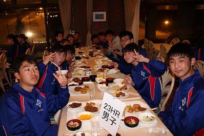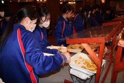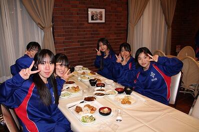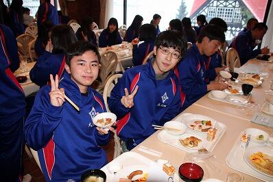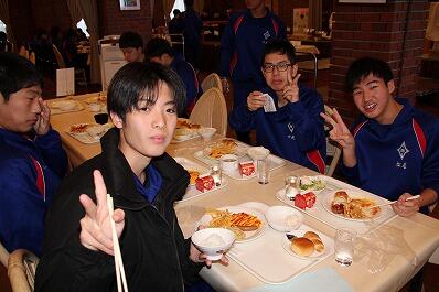 スキーをしてお腹はペコペコです。美味しいバイキング料理を食べました。