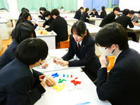 12月2日(火)にインテリア科3年の課題研究班できりしま支援学校を訪問し、高等部生徒22名と写真立て制作を行いました。