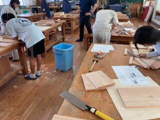 手工具が配られ、いよいよ制作スタートです。安全教育で学んだことを常に意識し取り組みましょう。