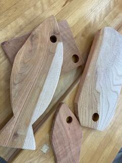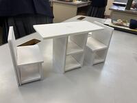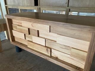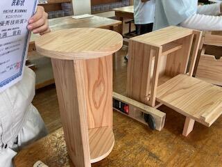 外山木材様からいただいた端材を活用したTVボードとスツールの試作品製作してみました。今後、課題研究等で様々な場面での活用考えています。