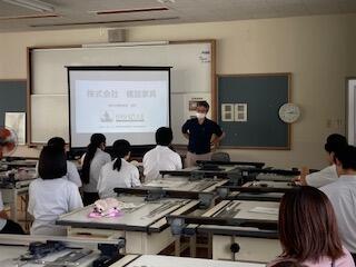 毎年のように本校の生徒が就職し、現場で活躍している企業で、今回も卒業生が会社説明をしてくださいました。