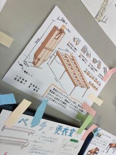 コロナ感染の影響で3年ぶりとなります。インテリア科では21社の企業に協力をいただき実施しております。印刷業、エクステリア、設計事務所、木材製造業、家具業、内装業、図書館や美術館と多岐にわたります。