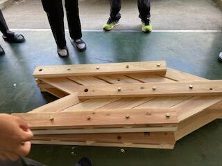 令和5年度出前授業「飫肥杉プロジェクト」の試作品が完成し、本校でお披露目会が行われました。