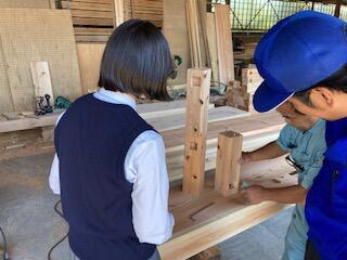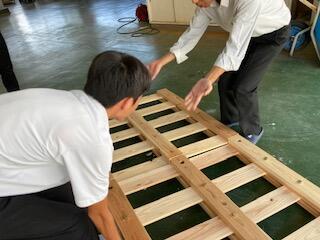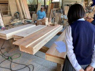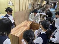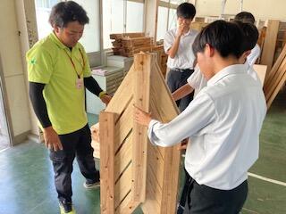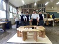 生徒がプレゼンした図面通りに「都城家具工業会」の職人さんに作っていただきましたが、更に職人さんの細やかな配慮が組み込まれ、その内容を丁寧に説明していただきました。