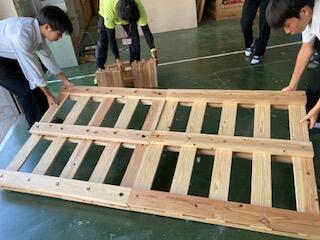昨日、外山木材さまのご厚意により、65×55×500サイズの木材端材1000本いただきました。スツール制作、課題研究、実習等での活用を想定しています。ありがとうございました。