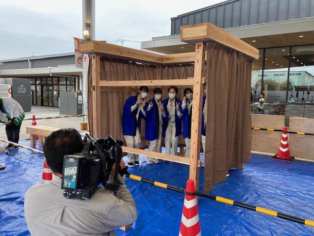 プロジェクト内で採用された家具が実際に並び、生徒たちも誇らしげな表情を浮かべていました。