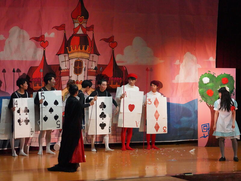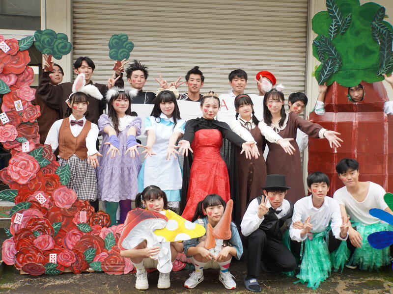 昨日は3年ステージメインで本日は1年展示、2年バザーで盛大に盛り上がっています。インテリア科3年ステージは「不思議の国のアリス Alice in wonderland」2年バザーは「あきひさくんの萌え萌えパンケーキ・フランクフルト」1年展示は「スーパーマリオ」です。