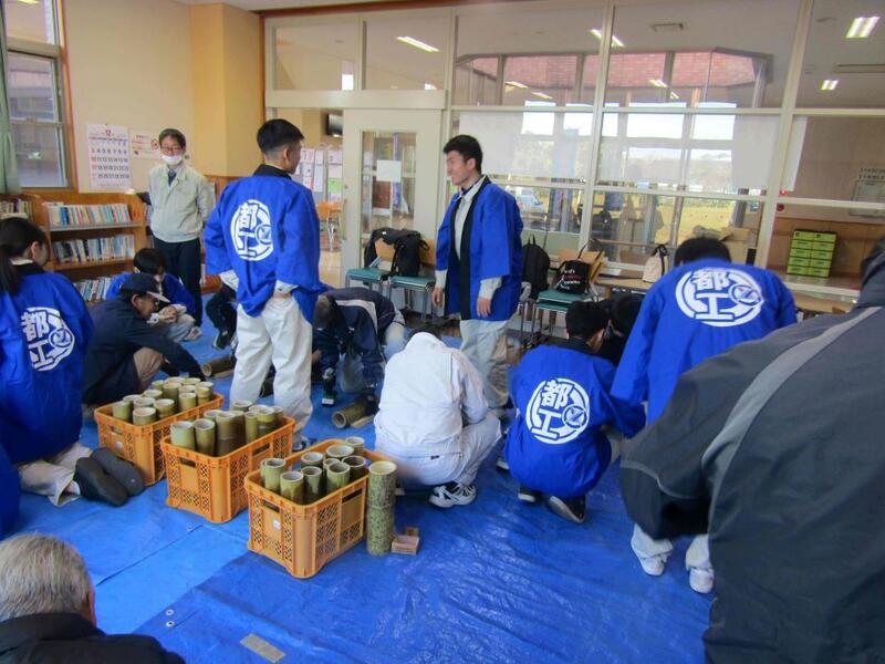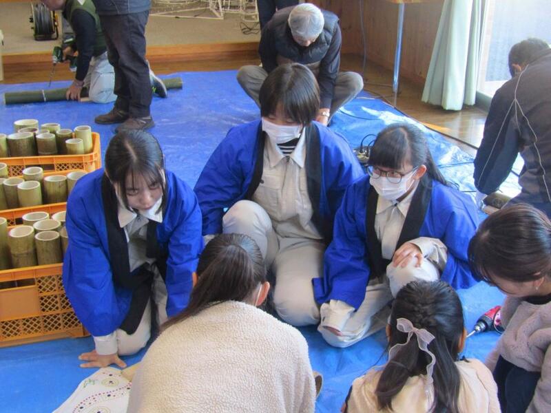 毎年開催されるイルミ&アートフェスタの竹灯籠ワークショップ開催しました。五十市地区まちづくり協議会主催のもと、インテリア科生徒が指導してくれました。対象は小学生です。頑張りました(^0^)
