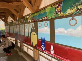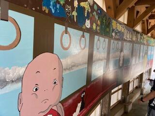 町が元気をコンセプトに地域活性化の一つで今回壁面アートを行いました。体育館と校舎をつなぐ渡り廊下に設置。児童、生徒、保護者、地域住民 約100名が参加しました。壁画だけでなく、竹灯籠作りや、トートバックデザインも同時に行いました。最後に地元の方による振る舞い(豚汁、おにぎり)の提供もありみんなが、大満足でした。